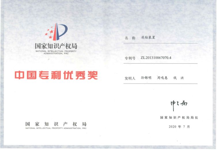 中國專利獎(jiǎng)優(yōu)秀獎(jiǎng) 凍結(jié)裝置